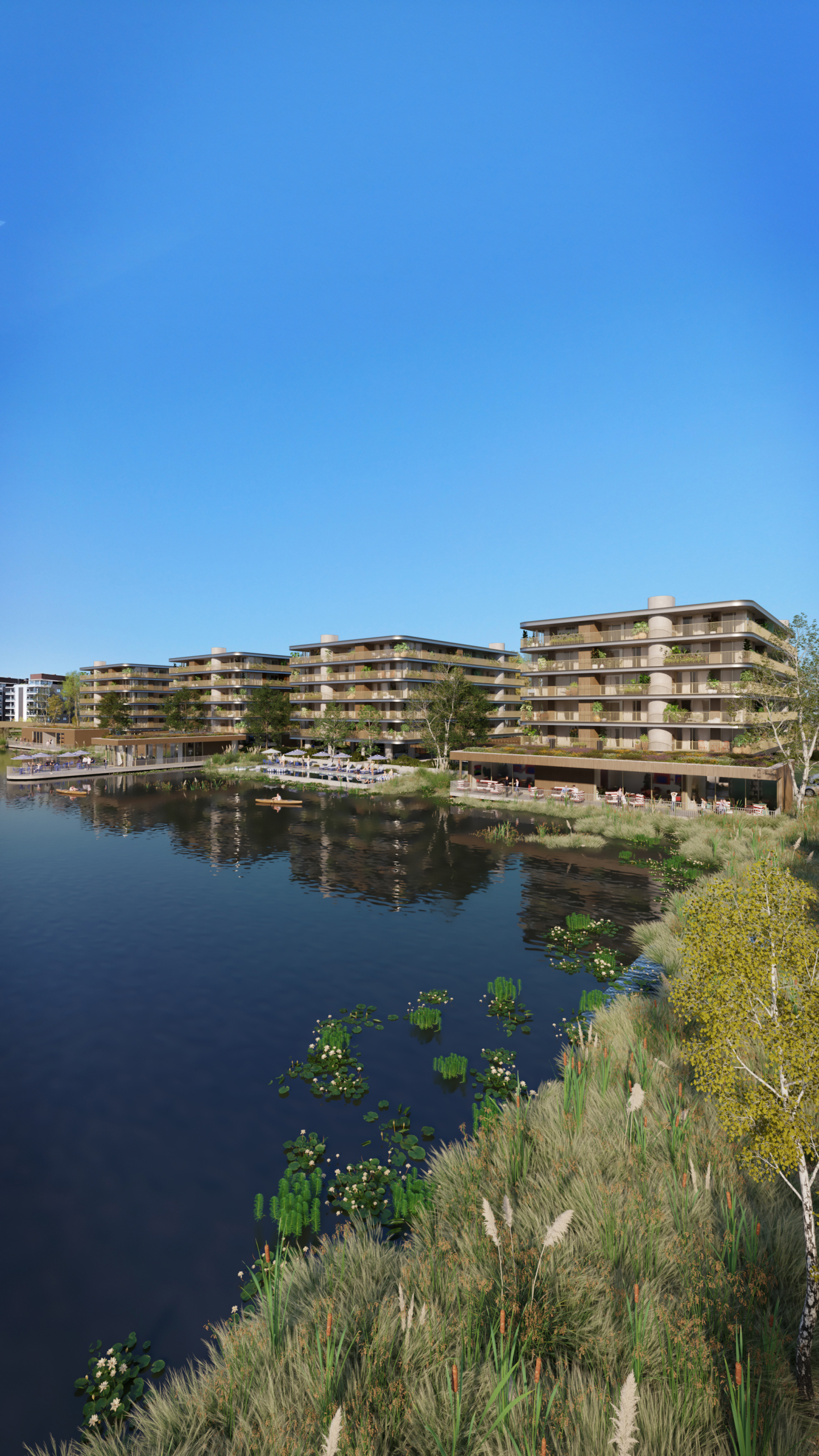 Cuenta con variedad de amenities: gimnasio, guardería náutica, piscina, solarium, sum con parrillero, playroom, pet spa, laundry, plaza de juegos, senderos sustentables y hasta un exclusivo café.